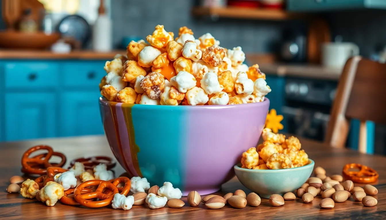 Building a snack platter around our sweet and salty popcorn creates visual appeal for special occasions. We arrange the popcorn as the centerpiece and surround it with fresh fruit, cheese cubes, and mixed nuts to offer variety while maintaining the sweet and salty theme.